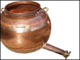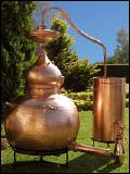 Allgemein und vor allem bei Alkoholdestillationen sollte der Brennkessel, der Hut und das Geistrohr immer aus Kupfer bestehen. Kupfer hat nicht nur die beste Wärmeleitfähigkeit von allen möglichen Materialien - es ist gleichzeitig beständig gegen die hochagressiven Alkoholdämpfe und kann giftige und unangenehme schmeckende Schwefelverbindungen die bei der Alkoholdestillation entstehen abbauen. |